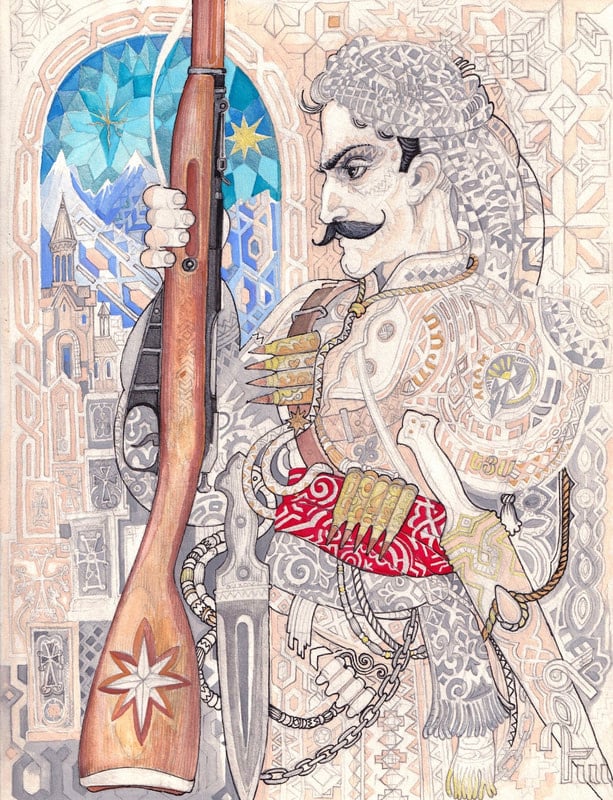 David Mkrtchyan was born in Armenia and currently lives and produces art in Los Angeles. A graduate of Igityan National Center of Aesthetics in Yerevan, David has been classically trained by Armenian greats such as Valmar, Razmik Pogosyan, and Artashes Hunanyan. After moving to America, David studied advertising design and fashion sketching. He has multiple awards from organizations such as the International Peace Festival in Bulgaria, and from the Motion Picture Council of Southern California. He currently paints and works with various mediums on canvas and book illustration. David Mkrtchyan has showcased his work in various individual and collaborative art shows.